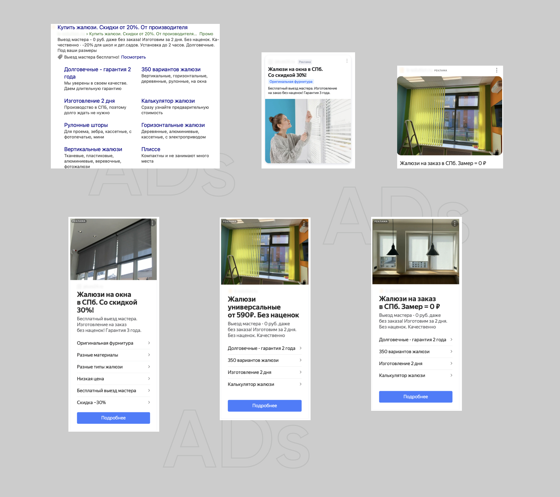 Плюс к кампаниям по всем видам жалюзи и по коммерческим запросам, также у нас настроена отдельная кампания на жалюзи для офисов и госучреждений. Заявки там очень дорогие, но заказы оттуда имеют намного больший чек.