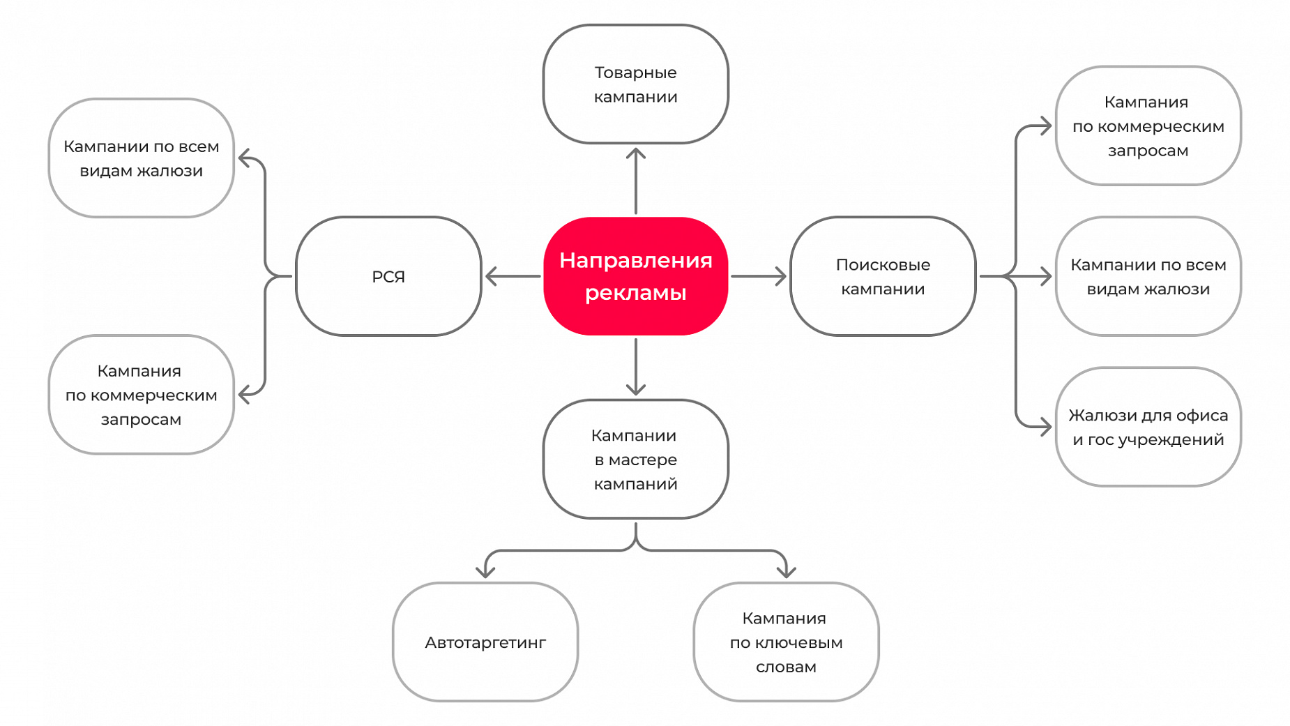 Такой товар как жалюзи нужно продвигать, в первую очередь, через поиск — именно там приходят горячие заявки от людей, которые хотят побыстрее поставить жалюзи. Если недостаточно этих заявок, нужно запускать мастер кампаний и получать дополнительные лиды, но нужно быть очень осторожным — они могут быть либо некачественными либо проблемными.