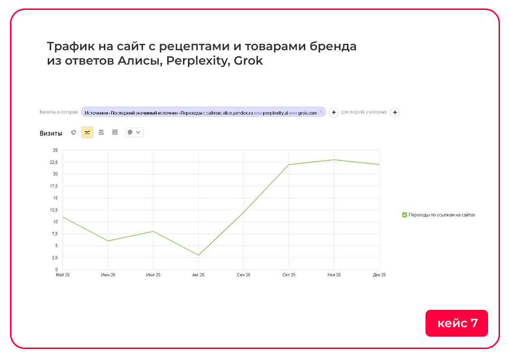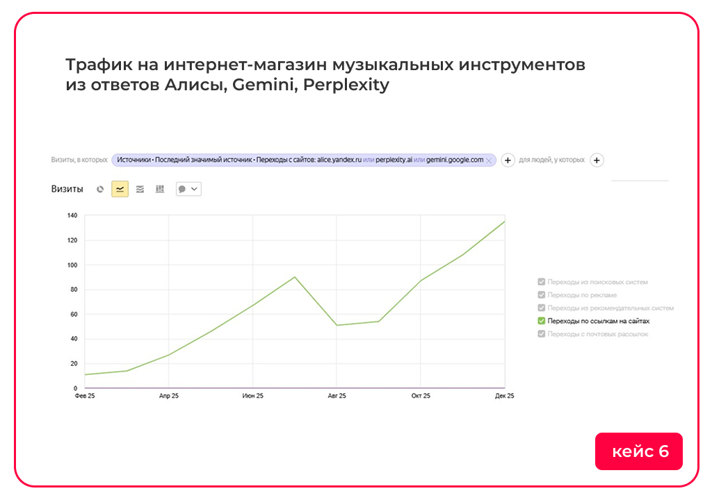 В результате сайт начинает работать не только как источник трафика из поиска, но и как подтвержденный источник информации в AI-среде, где формируется доверие и принимаются решения.